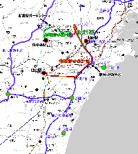 多賀城駅⇔(国道45号線)⇔仙台東部道路・仙台港北IC⇔(仙台北部道路)⇔グランディ・21沢乙口 所要20〜40分
