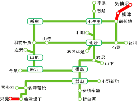 @東北6県のJR東日本線(JR バス及び只見線・只見〜(臨)田子倉駅間は除く)