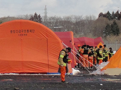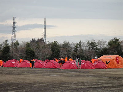 東日本大震災は2011年3月11 日14:46、突然やってきた。![]() 当然、グランディ・21も大きな被害を受けたが、さすがに倒壊の危険はなく、被災地支援 の最前線として、その機能を果たすこととなった。消防隊、各国からの支援隊の基地となった。 次の週。セキスイハイムスーパーアリーナは、被災地最大の遺体安置所となった。 ご遺体は主に、ヘリコプターや専用のトラックで沿岸部から運ばれてきた。 アリーナ北側、外では、ご遺体の洗浄作業が行われ、そのすぐ中で検視などが行われた。 仙台市の市バスが市内とグランディ・21を臨時バスで結んだ。 そのバスを降りてくる人の案内誘導のボランティアを、グランディ・21ボランティアは行った。 初めてグランディ・21に来られる人ばかりだった。 あるときは、私たちの仲間が、そのバスから降りてきてしまった。 アリーナの玄関内は、悲鳴を上げて泣く人、床にへたり込んでしまう人、が、たくさんおられた。 ロビーには、ご遺体の特徴を書いた紙がたくさん貼ってあった。 車で来られて迷われていた、ある若い夫婦を、誘導案内し、小一時間ほどすると、アリーナの中から出てきた。 アリーナ内には関係者しか入れない。ロビーに貼ってある特徴を見てから、可能性を係員(仙台市の職員など)に告げると、直接、棺まで行って良いことになっていた。 その若い夫婦は、手続きを済ませて、煙草を吸いに、外に出てきたようだった。私が軽く会釈すると、 「先ほどはありがとうございました。やっと子どもに会えました。」 と、おっしゃった。 アリーナの外、A,B駐車場には、外国人部隊、消防隊がテントを張っていた。 英語で彼らに語り掛けると、親しげに返事をしてきた。 比較的最後までいたのは、ロシア、トルコ、そして韓国。 彼らは、生存者捜索をしながら、ご遺体を多く収容した。 ロシアの人たちからはボルシチをいただいた。 韓国人も意外に親しげに話をしてくれた。 とっても人懐っこい、トルコの人たちは、いろんな物資を置いて、帰国していった。 こうやって被災地には多くの外国人が来てくれた。 このことを私たちは忘れない。