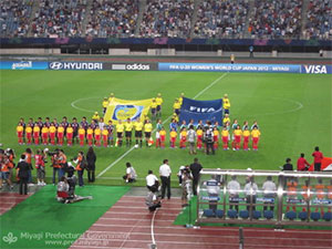 遺体安置所は6月末まで続いた。 そして、9月。 震災後初めて、アリーナで、ディズニーオンアイスが開催された。 9月10日(土)・11日(日)、桑田佳祐さんの復帰後初のライブ「宮城ライブ ~明日へのマーチ!!~」が開催。 会場周辺はお祭り一色となって、久しぶりに、笑顔あふれるアリーナとなった。 ひとめぼれスタジアム宮城は、柱が折れ、大型映像装置が壊れ、改修に1年半を要した。2012年8月、FIFA U-20女子ワールドカップが開催され、再びスタジアムは歓声にあふれた。 日本チームのメンバーは、GK 池田咲紀子, GK 武仲麗依, GK 望月ありさ, DF 木下栞, DF 坂本理保, DF 浜田遥, DF 中村ゆしか, DF 和田奈央子, DF 高木ひかり, DF 土光真代, MF 加藤千佳, MF 仲田歩夢, MF 藤田のぞみ, MF 猶本光, MF 田中陽子, MF 柴田華絵, MF 中里優, FW 横山久美, FW 田中美南, FW 道上彩花, FW 西川明花 だった。 |